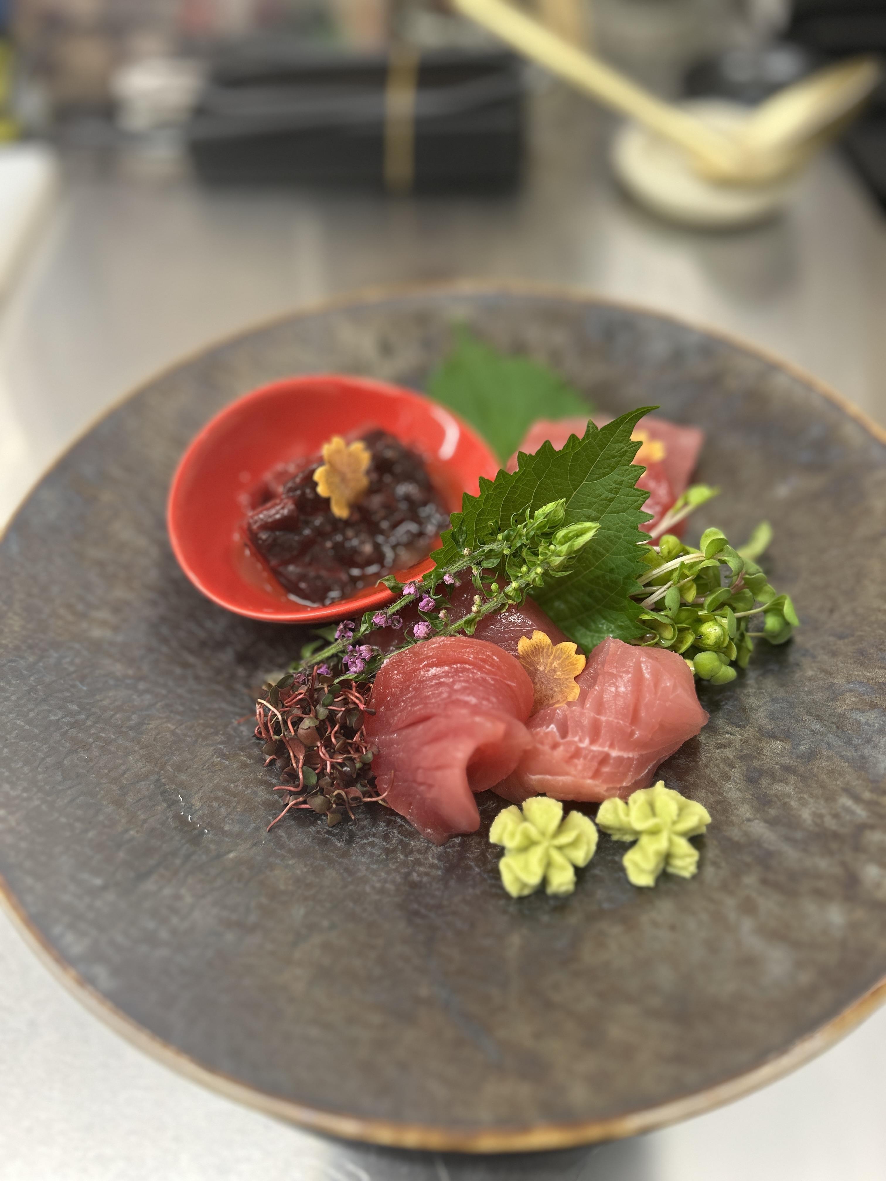 豪快なまぐろ中落ちやまぐろの創作料理、和牛料理で、
